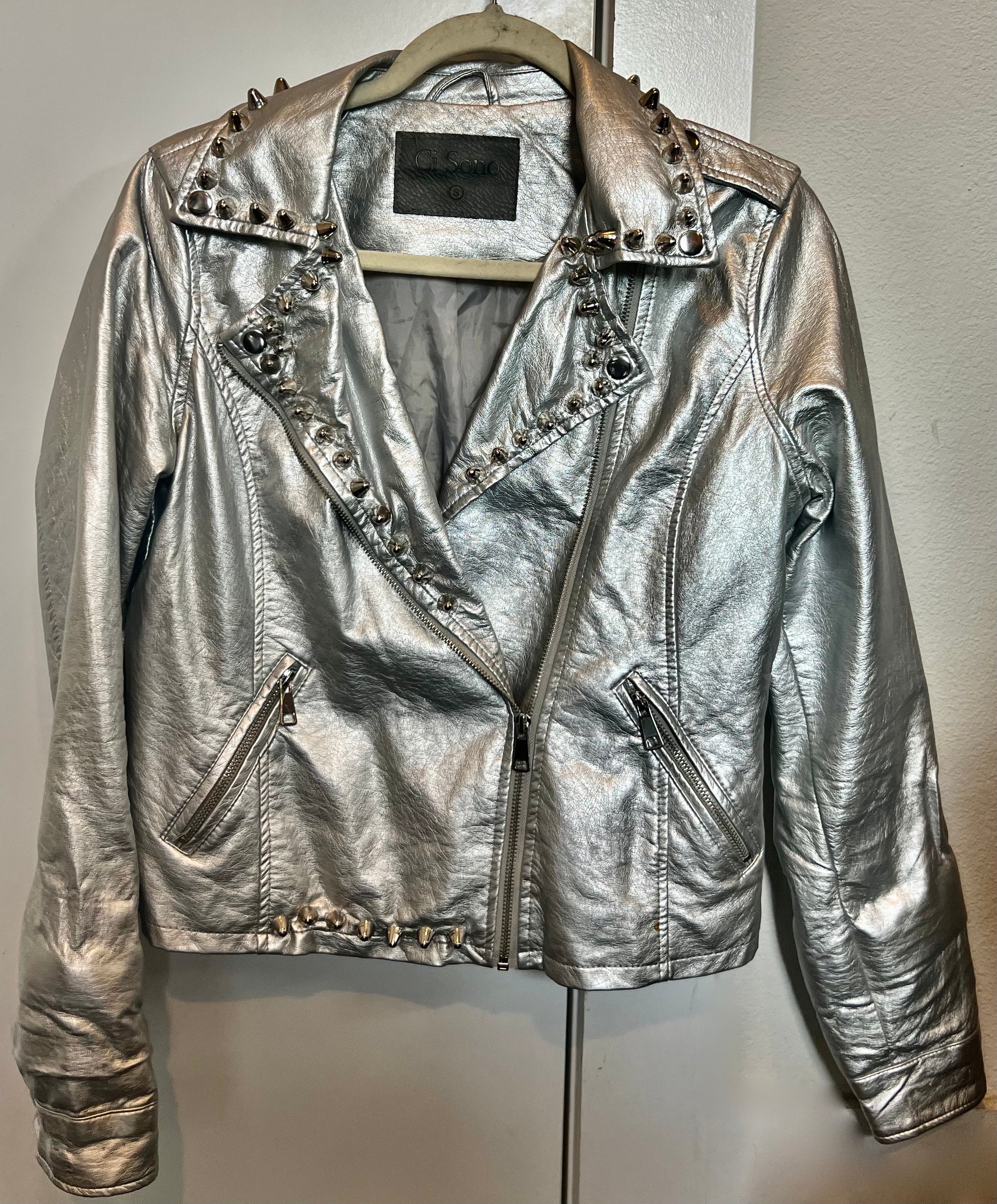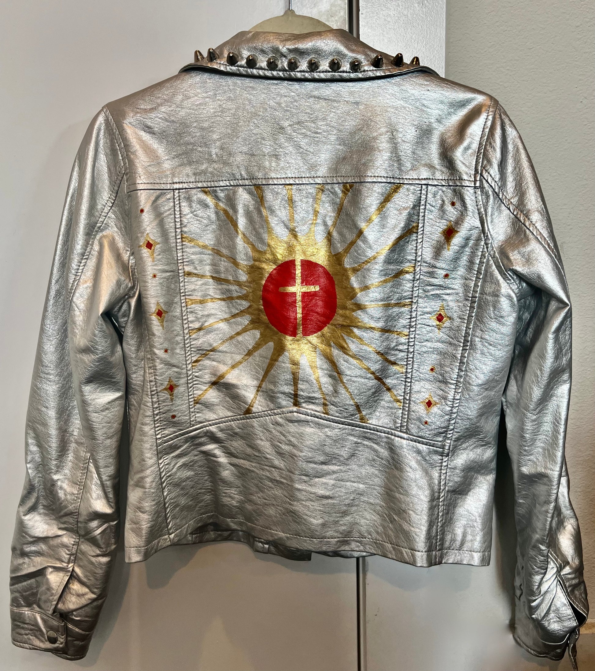 Hand Painted/Studded Faux Leather Silver Jacket